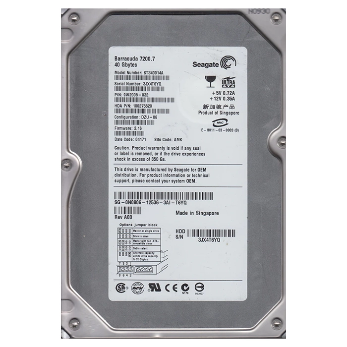 - Dell 0N0806 | 40GB 7200RPM IDE Ultra ATA/100 (ATA-6) 2MB Cache 3.5-Inch Hard Drive