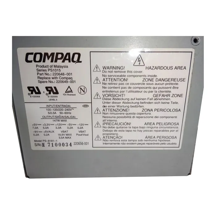 - HP 220649-001 | 147-Watts 200-240V 50-60Hz Power Supply ArmadaStation / ArmadaStation II