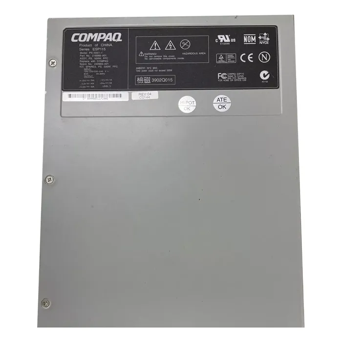 HP 230993-001 | 500-Watts 110-115V AC Hot-Pluggable Redundant Power Supply for ProLiant ML370 Gen2 Gen3 Server
