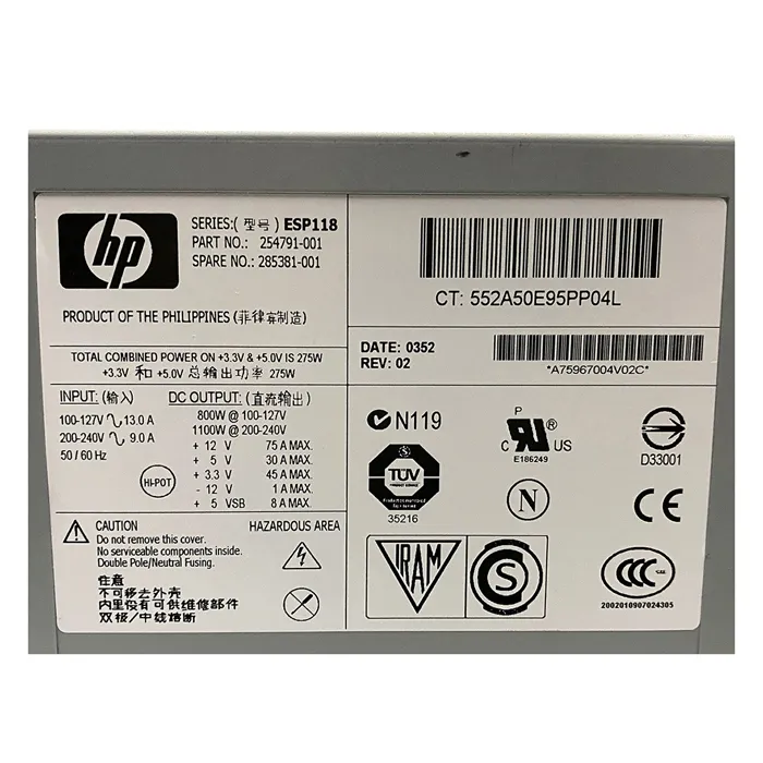 - HP 285381-001 | 1100-Watts 110-115V Hot-Pluggable Redundant Power Supply for ProLiant DL740