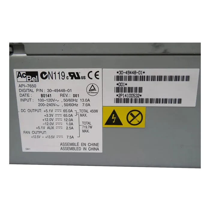 - HP 30-49448-01 | 720-Watts 200-240V 50-60Hz Hot-Pluggable Power Supply for AlphaServer ES40 / ES45