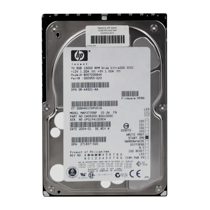 - Empower your legacy setups with the HP 332934R-001 | 332934R 001 72.8GB 10000RPM Ultra 320 SCSI non Hot Plug LVD 68 Pin 3.5 inch Hard Drive, offering reliable data storage for your vintage projects. Get this remarkable drive from Goto Direct and check out our collection for affordable vintage tech solutions!