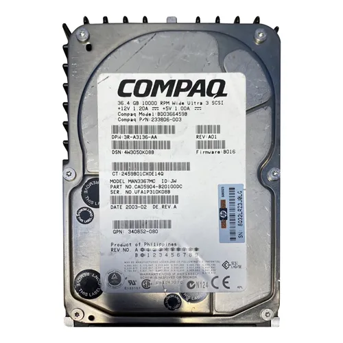 - Elevate your data center’s performance with the Compaq 340852-080 | 36GB Hard Drive, engineered for high-demand applications and rapid data retrieval. Check out this incredible option from Goto Direct and get this powerhouse at a reasonable price.