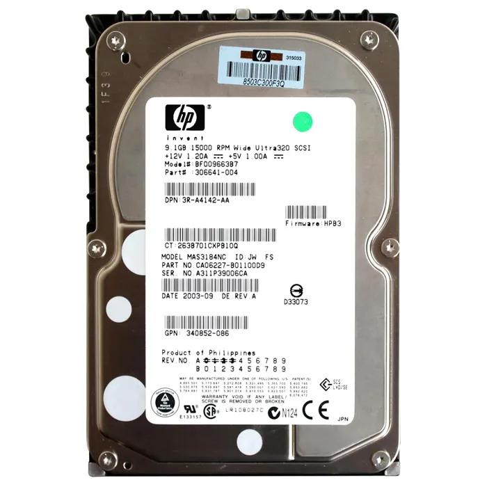 - HP 340852-086 | 9.1GB 15000RPM Ultra-160 SCSI Hot-Pluggable 4MB Cache (LVD) 80-Pin 3.5-Inch Hard Drive