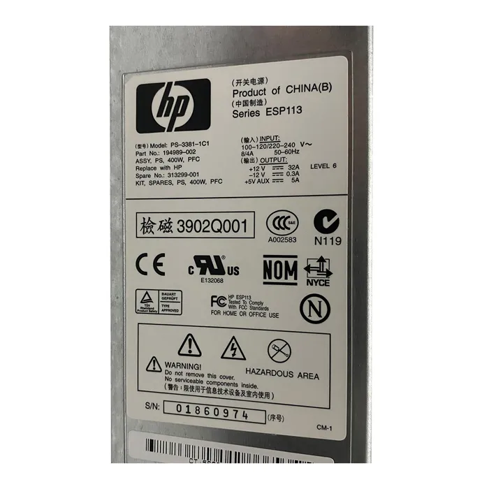 - HP 3902Q001 | 400-Watts Hot-Swappable Power Supply