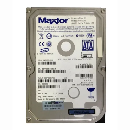 - Elevate your data center’s performance with the HP 395474-001 | 500GB 7200RPM SATA 1.5GB/s 3.5-inch Internal Hard Drive, engineered for high-demand applications and rapid data retrieval. Check out this incredible option from Goto Direct and get this powerhouse at a reasonable price.