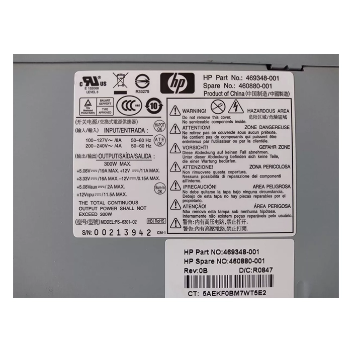 - HP 469348-001 | 300-Watts 200-240V 50-60Hz 24-Pin ATX Power Supply for DC5750/DC5800/DC5850