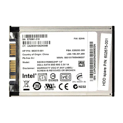 - HP 583510-001 | 80GB Multi-Level Cell SATA 3Gb/s 1.8-Inch Solid State Drive