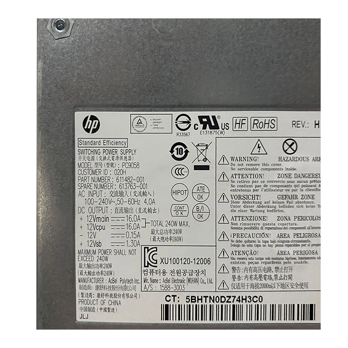 - HP 611482-001 | 240W 100-240VAC to 12VDC ATX Proprietary Power Supply for HP Pro 4000/6000 Elite 8000 SFF PC