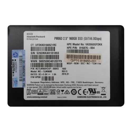 - Revolutionize your storage game with the HP 816876-004 | 960GB SATA 6GB/s 2.5-inch Solid State Drive, delivering unparalleled speed and reliability at your fingertips. Purchase this exceptional drive from Goto Direct and explore our collection to enhance your data solutions!