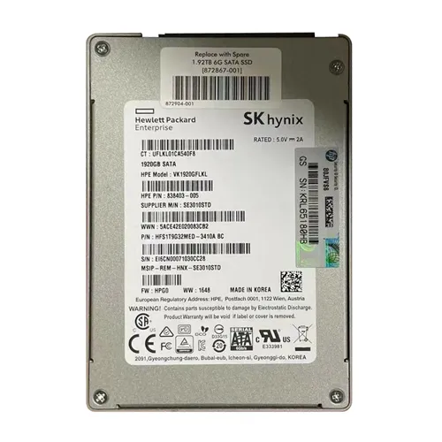 - HP 838403-005 | 1.92TB Multi-Level Cell SATA 6Gb/s Hot Swappable Read Intensive-3 2.5-Inch Enterprise Solid State Drive for ProLiant DL120 Gen9