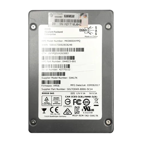 - HP 844023-001 | 800GB Multi-Level Cell SAS 12Gb/s Hot Swappable Mixed Use SFF 2.5-Inch Enterprise Solid State Drive for ProLiant DL560 Gen10
