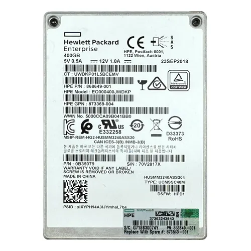 - HP 868649-001 | 400GB Multi-Level Cell SAS 12Gb/s Hot Pluggable Write Intensive SFF 2.5-Inch Solid State Drive for ProLiant Servers and Storage Arrays