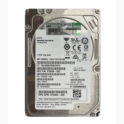 - HP 876938-002 | 1.2TB 10000RPM SAS 12Gb/s Hot-Pluggable Dual Port (512n) SFF 2.5-inch Hard Drive for Gen1/7 ProLiant Server/Storage Array