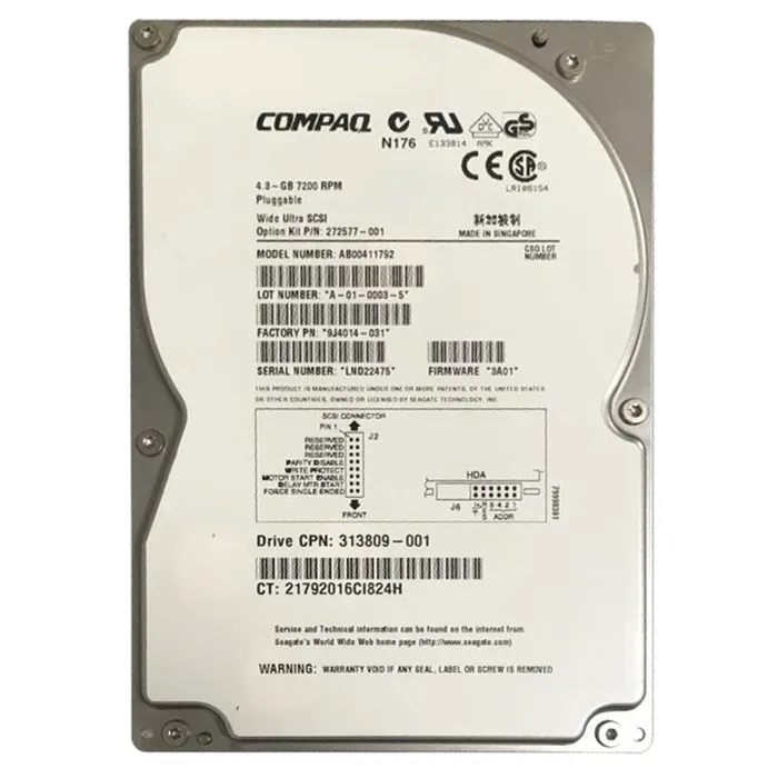 - HP AB00411792 | 4.3GB 7200RPM Ultra-2 Wide SCSI Hot-Pluggable (LVD) 80-Pin 3.5-Inch Hard Drive