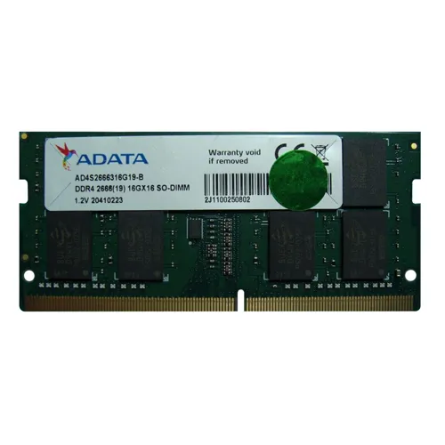 - Adata AD4S2666316G19-B | 16GB DDR4-2666MHz Non-ECC Unbuffered CL19 260-Pin SODIMM 1.2V 1Rx8 Memory Module