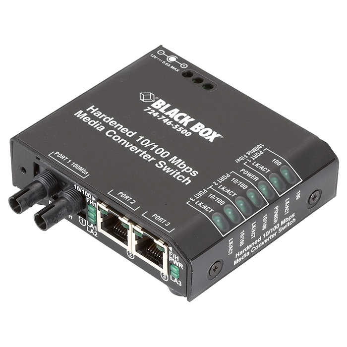 - Black Box LBH100A-H-ST | LBH100 Series 2 x Ports 10/100Base-T RJ-45 + 1 x Port 100Base-FX Layer 2 Fast Ethernet Hardened Temperature Media Converter Switch