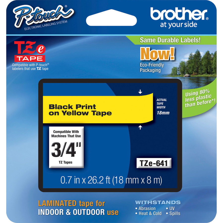 Brother TZE641 | P-Touch TZe Flat Surface Black Print on Yellow Laminated Tape