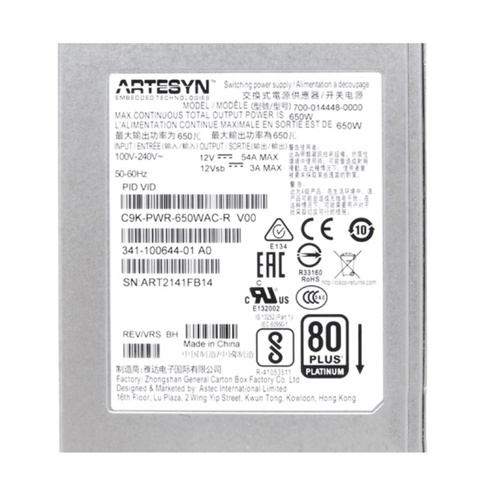 - Cisco C9K-PWR-650WACR | 650-Watts 90-264V AC Hot Plug Redundant Power Supply for Catalyst 9500 Series Switches