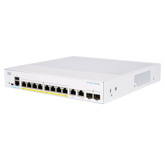 • Cisco CBS350-8FP-2G-TW | Business 350 Series 8 x RJ-45 Ports PoE+ 10/100/1000Base-T 2 x Combo SFP Ports Layer 3 Managed Rack-mountable Gigabit Ethernet Network Switch