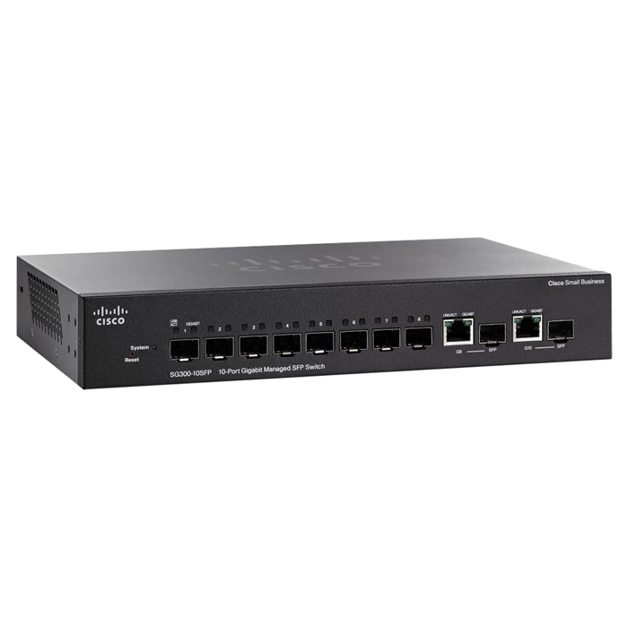 - Cisco SG300-10SFPK9NA-RF | Small Business 300 Series SG300-10SFP 8 x Ports SFP 10/100/1000Base-T + 2 x Ports Combo SFP (mini-GBIC) Rack-Mountable 1U Layer 3 Managed Gigabit Ethernet Network Switch