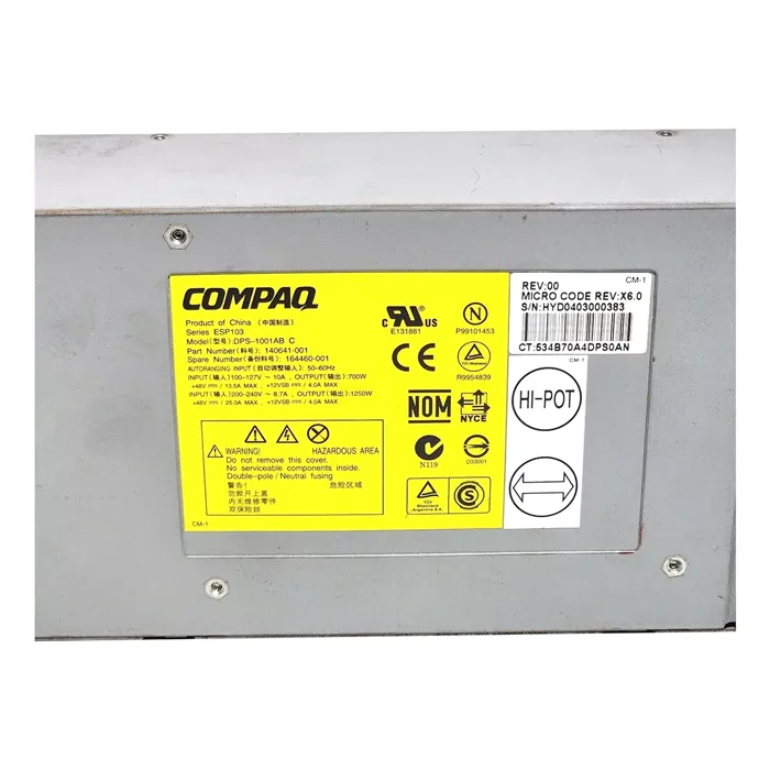 - Compaq DPS-1001ABC | 1250W 100-240V AC Redundant Hot Swap Power Supply for ProLiant ES47 DL590/6