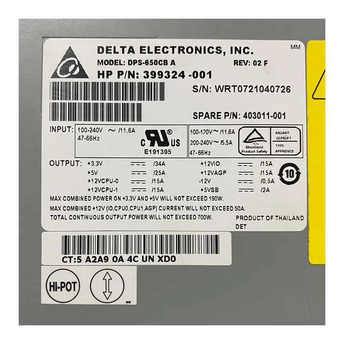 Delta DPS-650CBA | 700-Watts Power Supply for C8000 Workstation