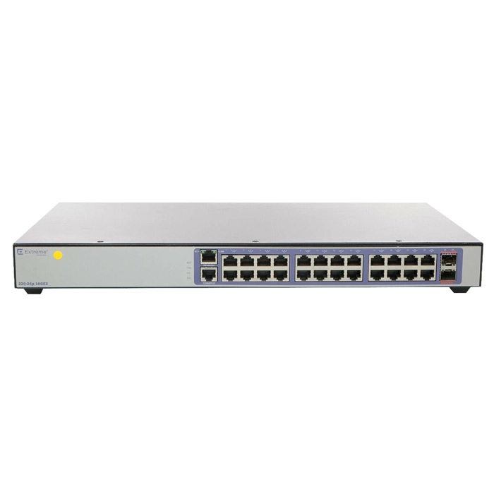 - Extreme Networks 16563 | Switching 220-24p-10GE2 220 Series 24 port 10/100/1000BASE-T PoE+ 185W SFP+ 10 Gigabit Ethernet PoE+ Switch