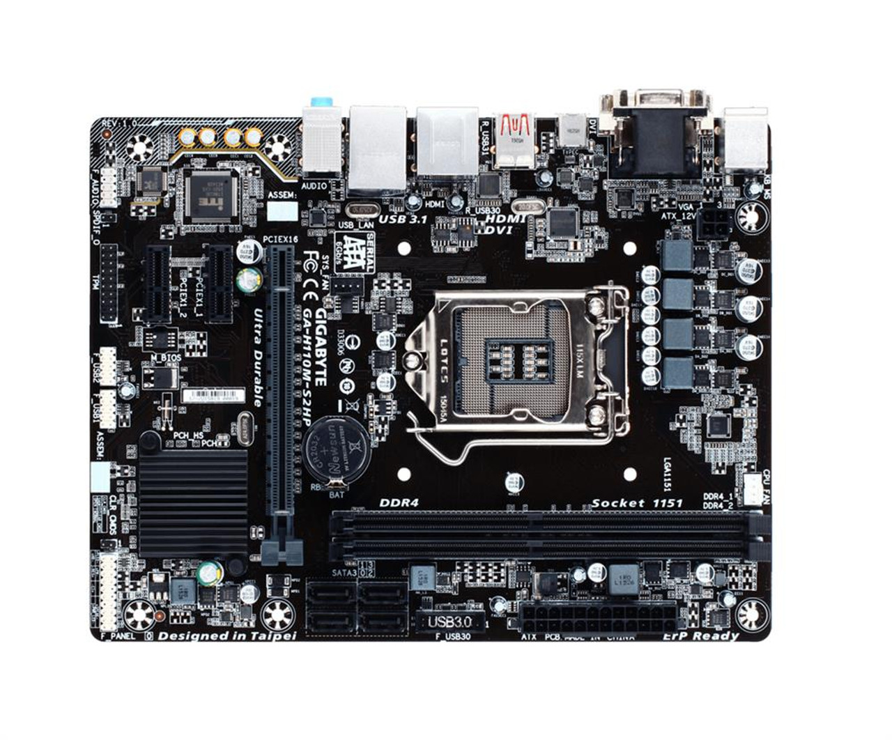 Gigabyte GA-H110M-S2HP | Socket H4 LGA-1151 Intel H110 Chipset Ultra Durable Desktop System Board (Motherboard)