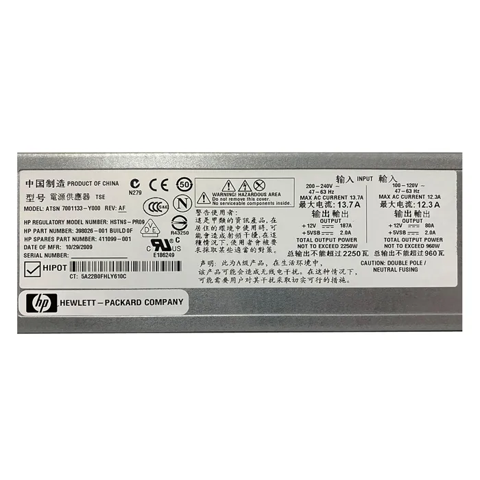 - HP HSTNS-PR09 | 2250-Watts 200-240V 47-63Hz Hot-Pluggable Redundant Power Supply for BLC7000 Enclosure