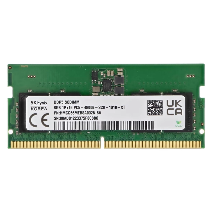 - Hynix HMCG66MEBSA092NBA | 8GB DDR5-4800MHz PC5-38400 Non-ECC Unbuffered SODIMM CL40 1Rx16 1.1V 262-Pin Memory Module