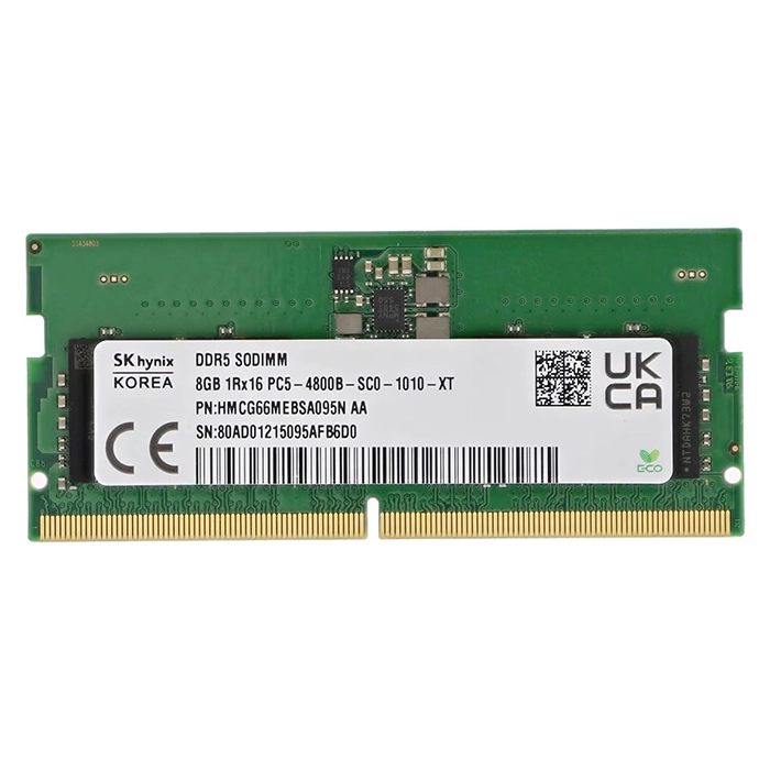 - Hynix HMCG66MEBSA095NAA | 8GB DDR5-4800MHz PC5-38400 Non-ECC Unbuffered SODIMM CL40 1Rx16 1.1V 262-Pin Memory Module