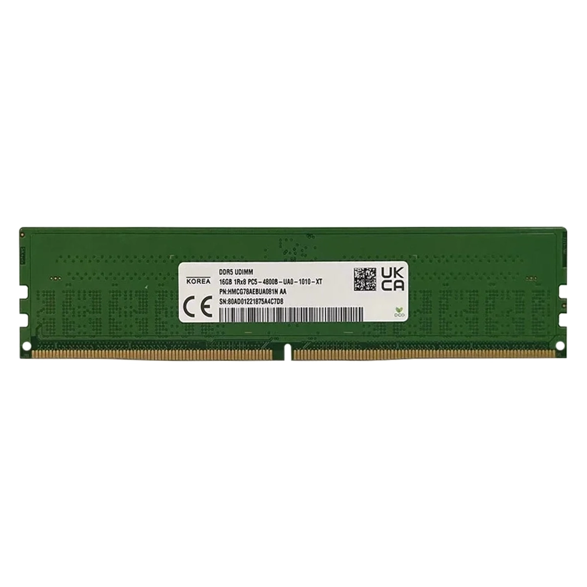 - Hynix HMCG78AEBUA081N | 16GB DDR5-4800MHz PC5-38400 Non-ECC Unbuffered UDIMM CL40 1Rx8 1.1V 288-Pin Memory Module