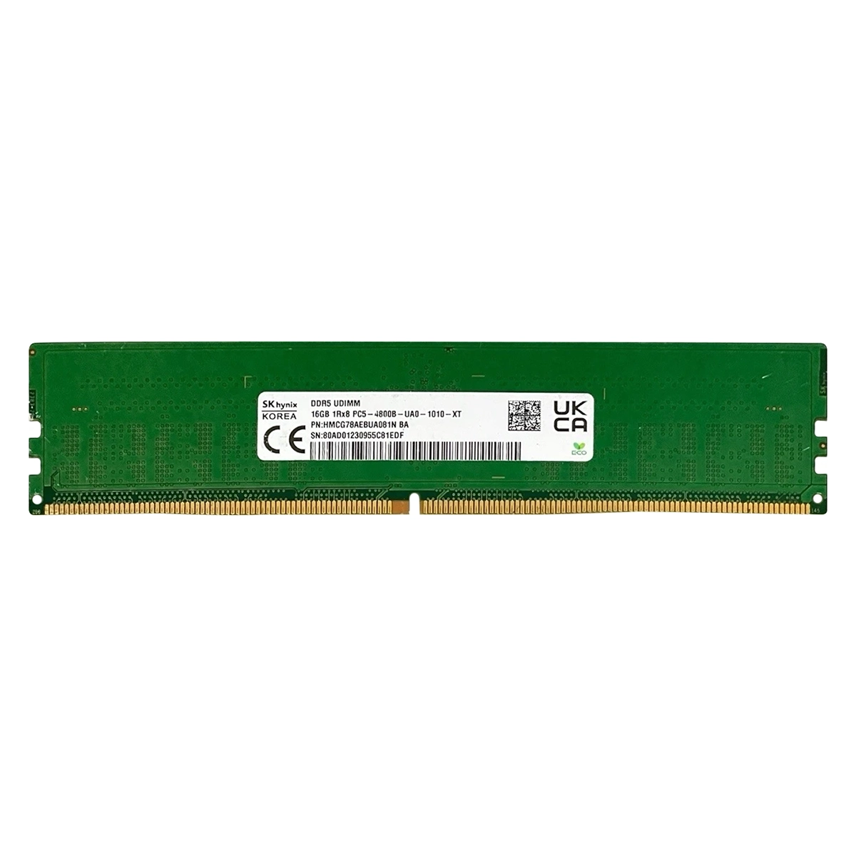 - Hynix HMCG78AEBUA081NBA | 16GB DDR5-4800MHz PC5-38400 Non-ECC Unbuffered UDIMM CL40 1Rx8 1.1V 288-Pin Memory Module