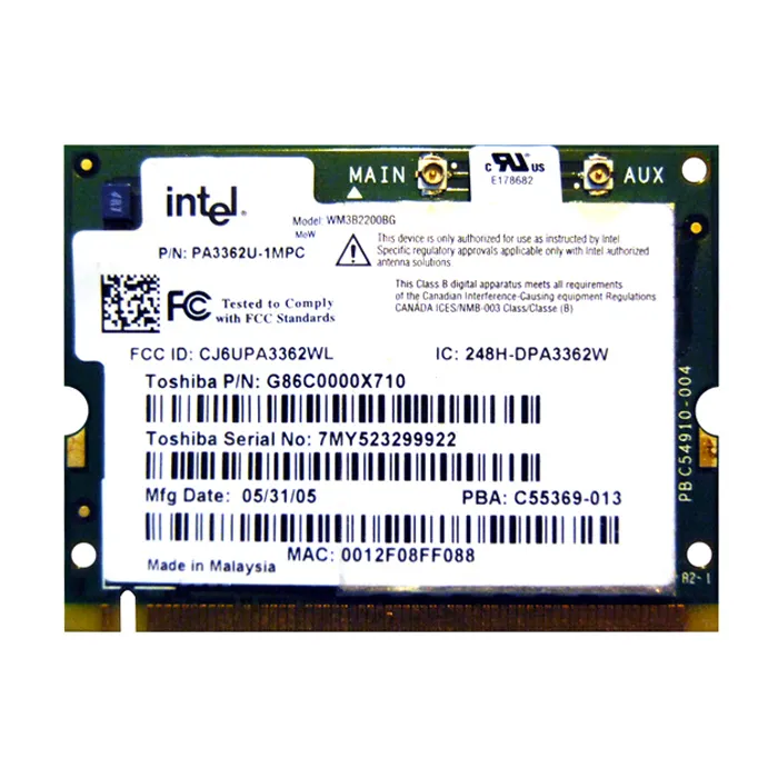- Intel PA3362U | Toshiba 2.4GHz 54Mbps IEEE 802.11b/g Mini PCI Wireless Network Adapter