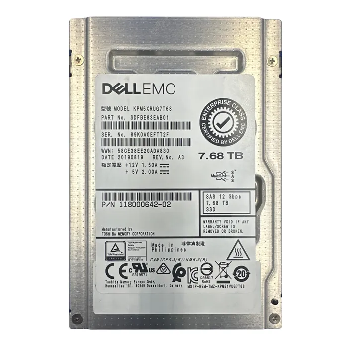 - KIOXIA KPM5XRUG7T68 | 7.68TB Triple-Level Cell SAS 12Gb/s Hot-Pluggable Read Intensive 2.5-Inch Solid State Drive for PowerEdge Server