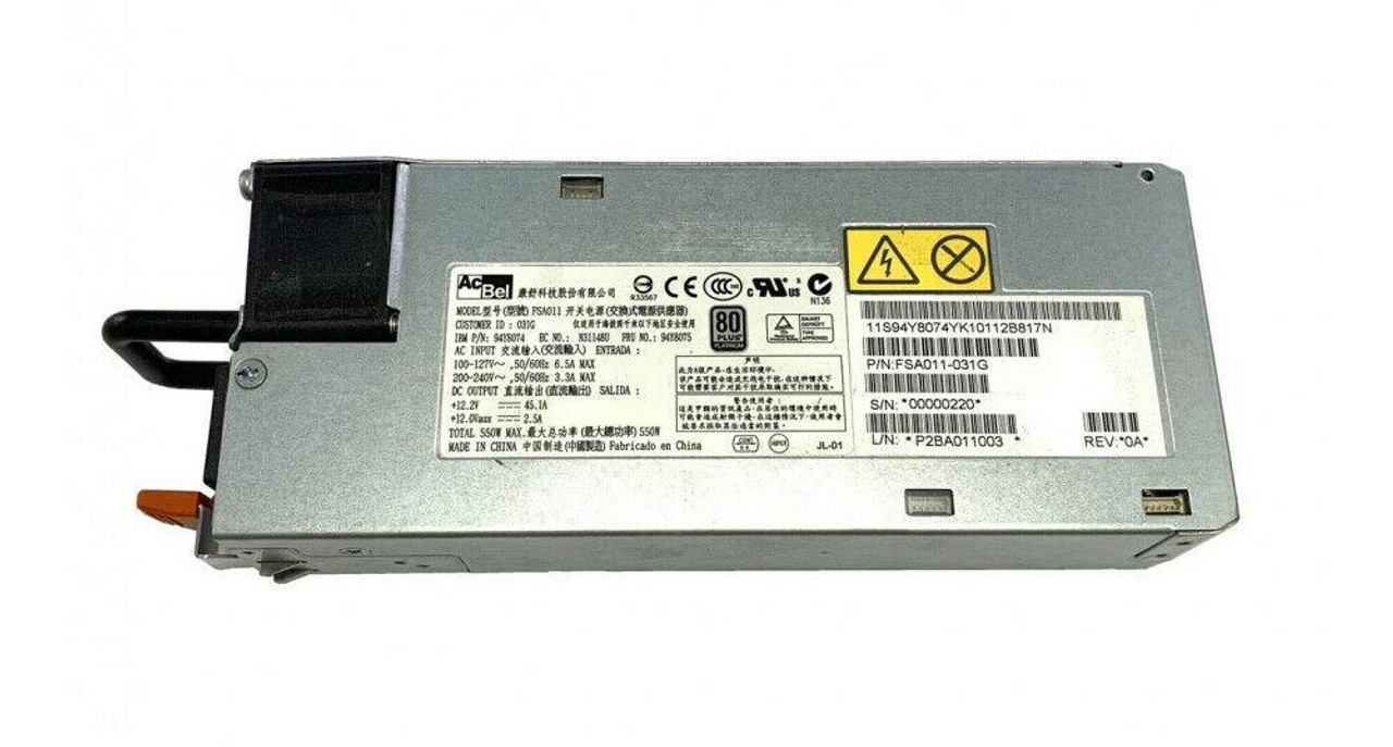Lenovo 94Y8074-02 | 550W Hot Swap 80Plus Platinum AC Power Supply for System x for iDataPlex DX360 M4