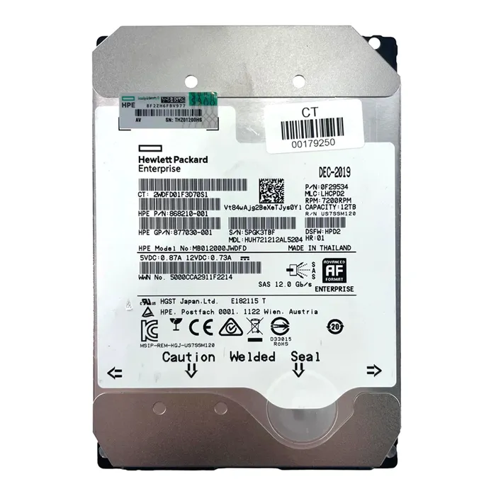 HP MB012000JWDFD | 12TB 7200RPM SAS 12GB/s Hot-Pluggable 3.5-Inch LPc Hard Drive for ProLiant Gen10/Gen10+/Gen11 Servers