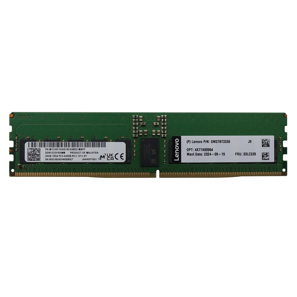 - Micron MTC20F1045S1RC64B | 32GB DDR5-6400MHz PC5-51200 ECC Registered CL52 288-Pin RDIMM 1.1V 1Rx4 Memory Module
