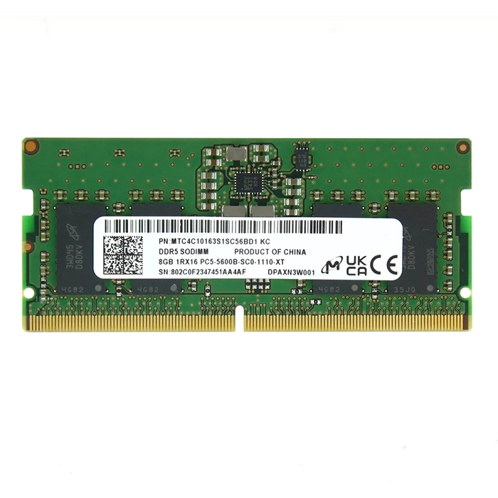 - Micron MTC4C10163S1SC56BD1 | 8GB DDR5-5600MHz PC5-44800 Non-ECC Unbuffered SODIMM CL46 1Rx16 1.1V 262-Pin Memory Module