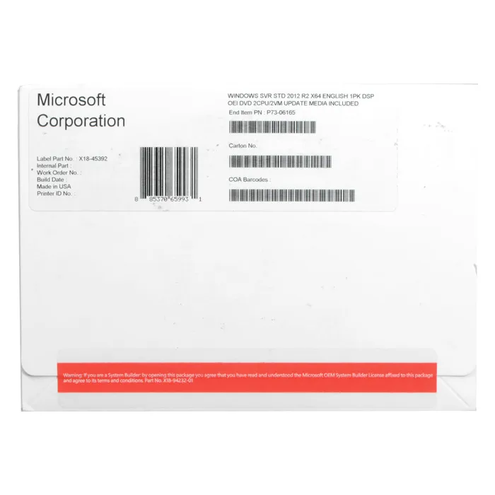 - Microsoft P73-06165 | Windows Server 2012 R2 Standard X64 English 2CPU/2VM