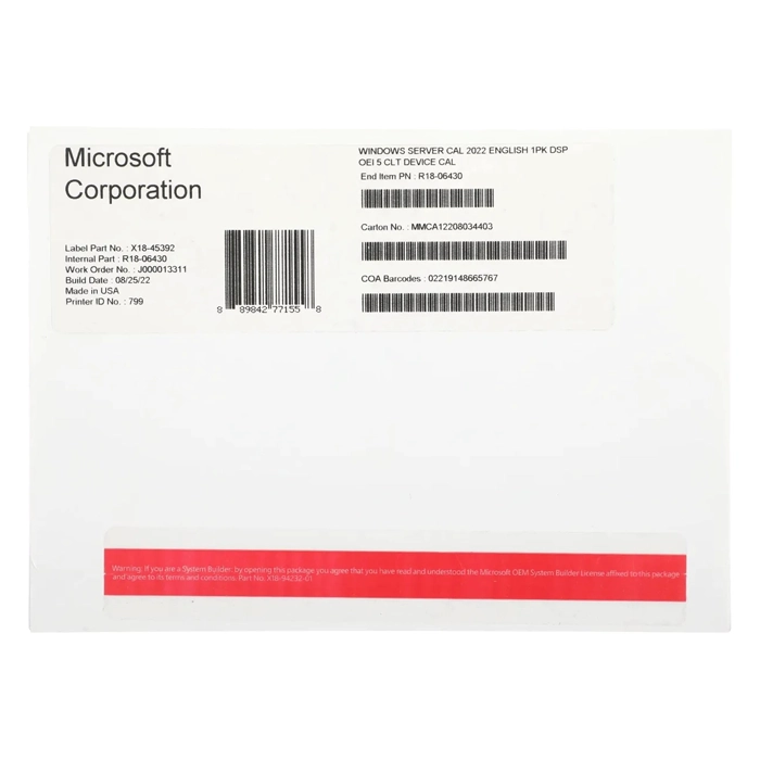 - Microsoft R18-06430 | Windows Server 2022 5 Device CAL License