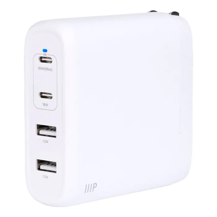 - Monoprice 41986 | USB-C Charger 100W 4-port PD GaN Technology Foldable Wall Charger for MacBook Pro/Air iPad Pro iPhone 16/15/14/Plus/Pro/Pro Max