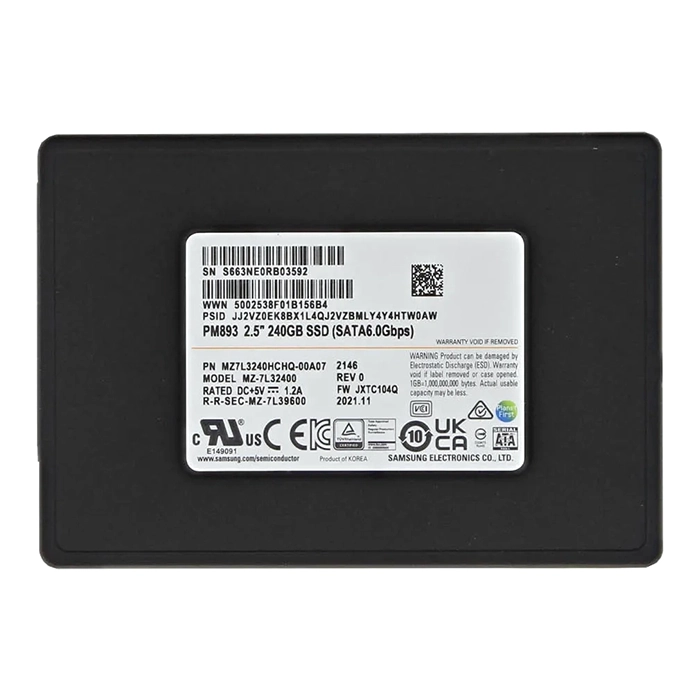 - Revolutionize your storage game with the Samsung MZ-7L324000 | PM893 Series 240GB Triple-Level Cell SATA 6GB/s V-NAND (AES 256-bit Encryption) 2.5-inch Solid State Drive, delivering unparalleled speed and reliability at your fingertips. Purchase this exceptional drive from Goto Direct and explore our collection to enhance your data solutions!