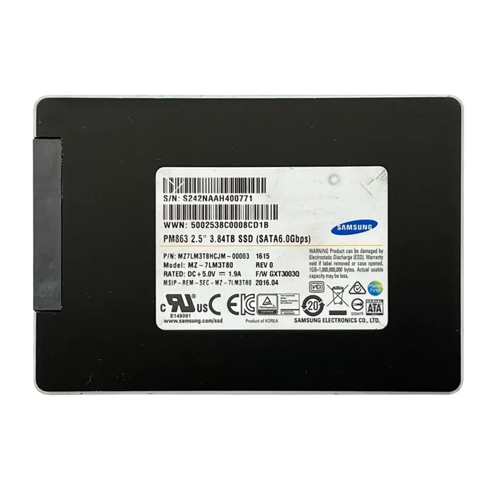- Experience blazing-fast data access with the Samsung MZ7LM3T8HCJM | PM863 3.84TB SATA 6GB/s 2.5 inch Solid State Drive, engineered for read-intensive applications and effortless hot-swapping. Browse this incredible find from Goto Direct and purchase this storage essential for an unbeatable price!