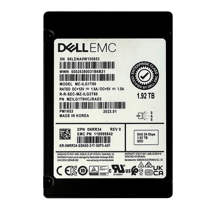 - Dell NRR34 | 1.92TB 2.5" 24GB/s SAS Triple-Level Cell Read-Intensive (512e) Hot-Pluggable Solid State Drive for PowerEdge G14 - G16 Servers and Storage Arrays