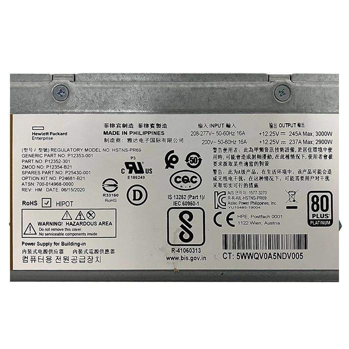 - HP P12352-301 | 3000-Watts AC Platinum Hot Plug Power Supply For Apollo 6500 Gen10