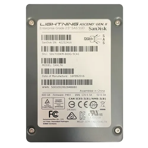 - SanDisk SDLTODKM-800G-5CA1 | Lightning Ascend Gen. II 800GB SAS 12Gb/s 2.5-Inch Solid State Drive