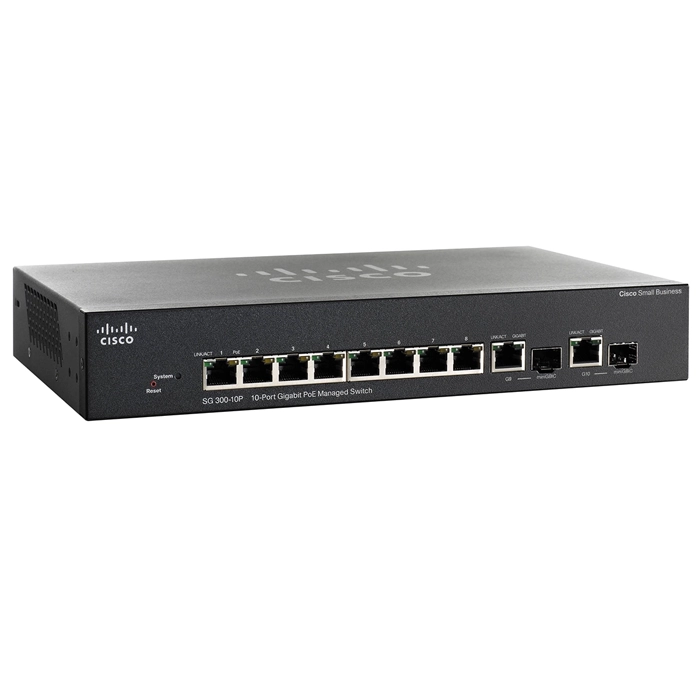 - Cisco SG300-10P | Small Business 300 Series 8 x Ports PoE 10/100/1000Base-T + 2 x Combo SFP (mini-GBIC) Ports Layer 3 Stackable Managed 1U Rack-mountable Gigabit Ethernet Network Switch