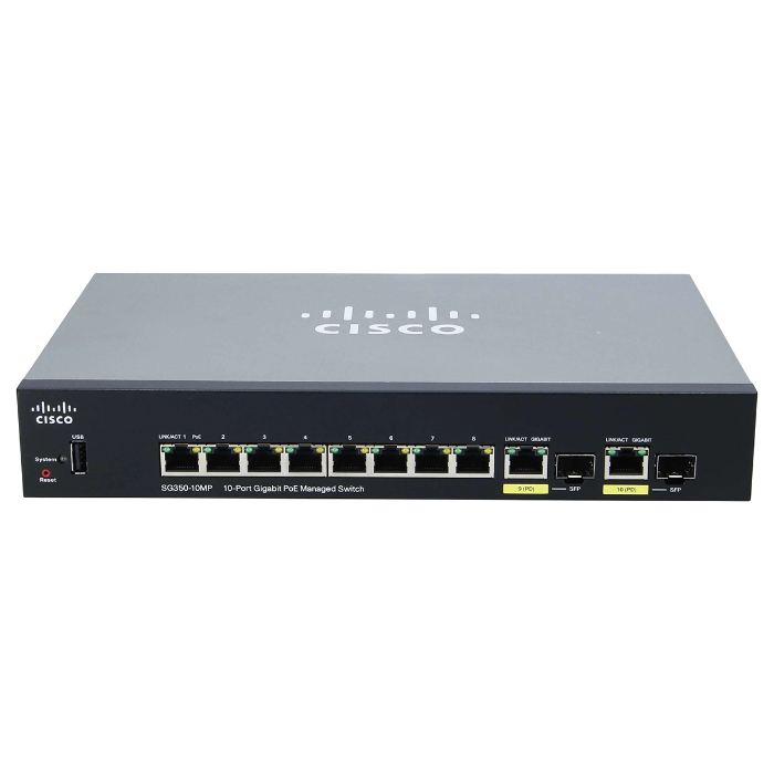 - Cisco SG350-10MP-K9NA-RF | Small Business 350 Series SG350-10MP 8 x Ports PoE+ 10/100/1000Base-T + 2 x Ports Combo SFP Rack-Mountable Layer 3 Managed Gigabit Ethernet Network Switch